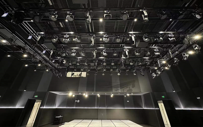 特點是載荷大,速度慢,起停平穩(wěn)。燈桿帶有燈具保護圈,防止相鄰吊桿相碰而損壞燈具。一般配有1-2個燈光電纜收納框。除桿體與電動景用吊桿形式不同外,其余與電動吊桿相同。